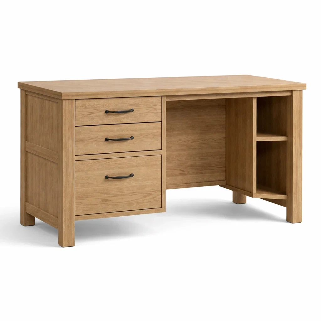 Bureau en bois avec tiroirs et étagères blanc et chêne clair